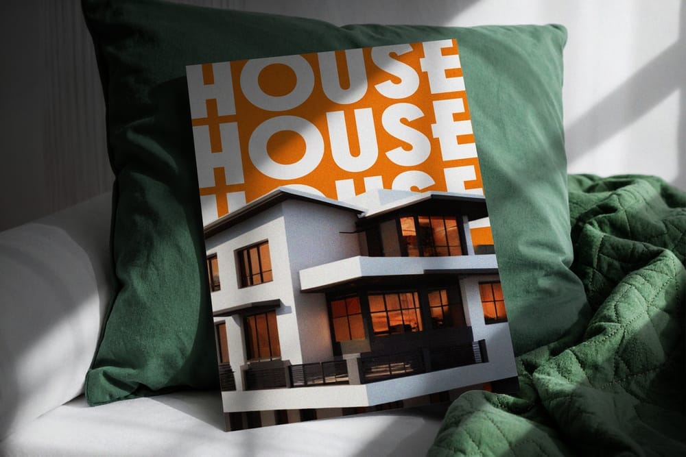 Elegant Poster Mockup on Bed Pillow