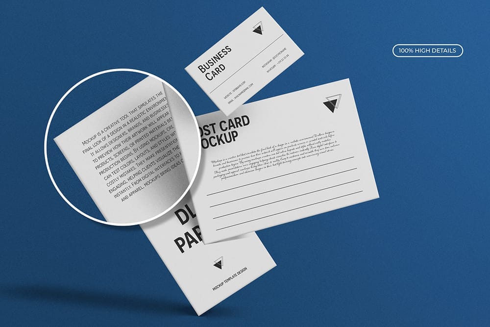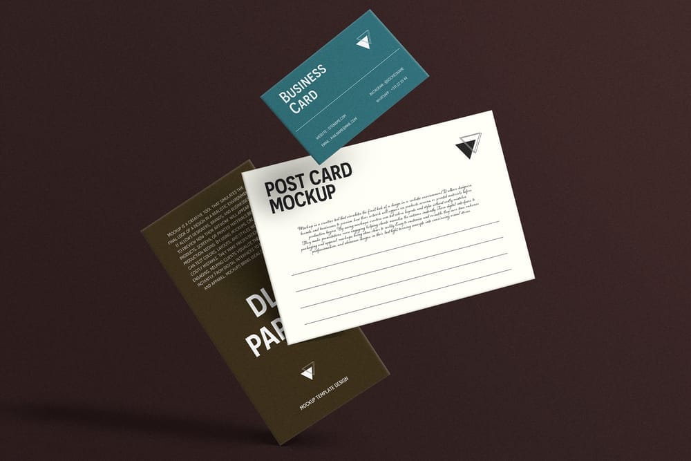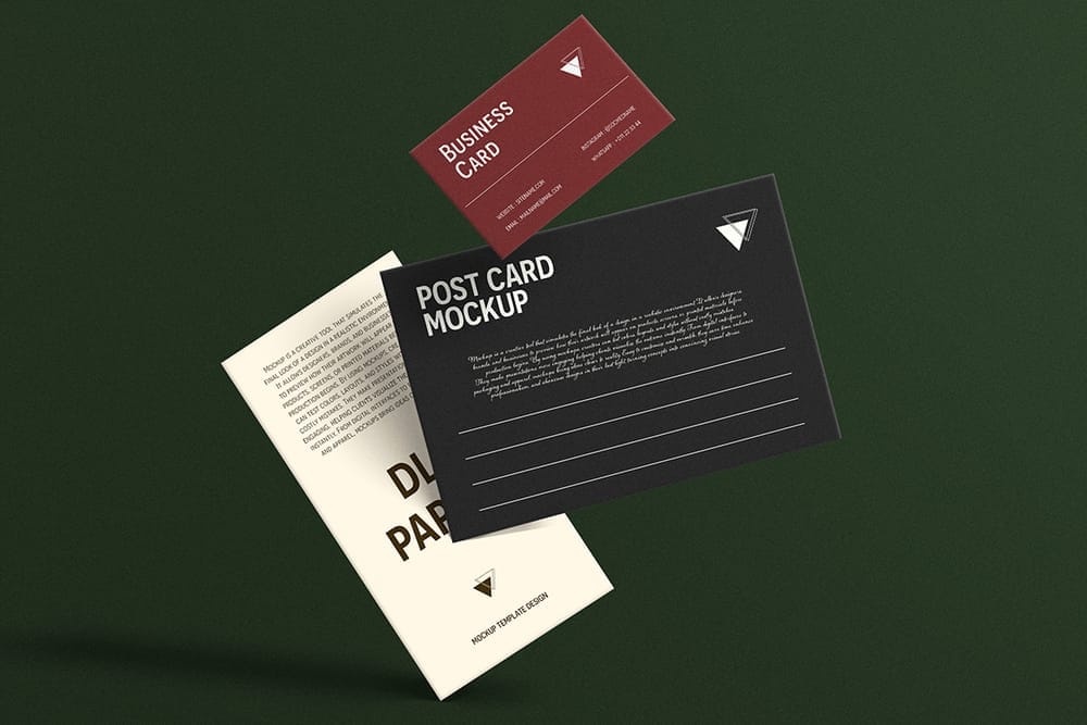 Floating Business Card, Postcard & DL Paper Mockup