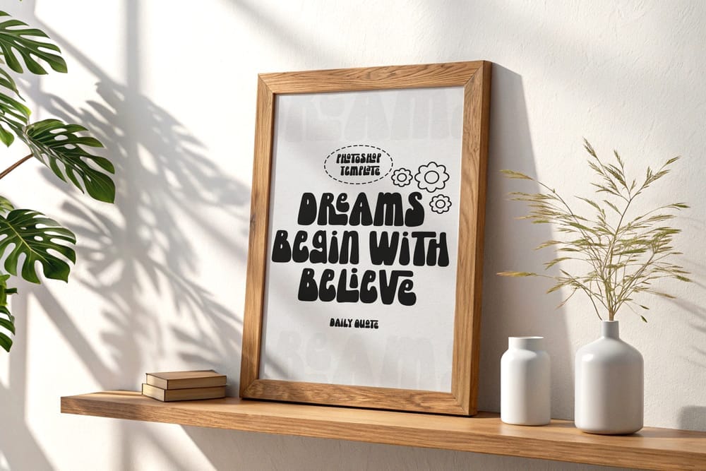 Wooden Shelf Poster Mockup